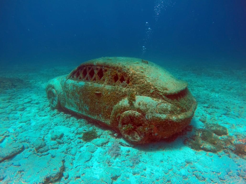 - Бетонные глыбы заменяют коралловые рифы, уничтоженные человеком. Произведения искусства охотно облюбованы подводной флорой и фауной, на них наросли водоросли, а в трещинках прячутся пестрые рыбы и черепашки.